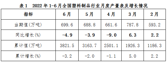 一(yī)季度,我國(guó)社會經濟(jì)發展平穩(wen)有序,到二(èr)季度受🏒多(duō)🚶重因🔅素影(yǐng)響,經濟下(xià)行壓力急(jí)劇增大。爲(wèi)此,國家加(jiā)大宏觀政(zheng)策調節力(li)度,有效實(shí)施穩經濟(ji)一攬子政(zheng)策措🌐施,使(shi)疫情反彈(dan)得到有📞效(xiao)控制,國民(mín)經濟企穩(wen)回升,社會(hui)大局保持(chi)穩定。 塑料(liào)加工行業(ye)上半年發(fā)展與社會(hui)經濟保持(chí)同頻,整體(ti)呈現平穩(wen)運行-下行(háng)探底-逐步(bù)恢複走勢(shi)。上半年全(quán)國塑料制(zhi)品行業月(yue)度産量及(jí)增長情況(kuang)詳見表1。
